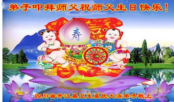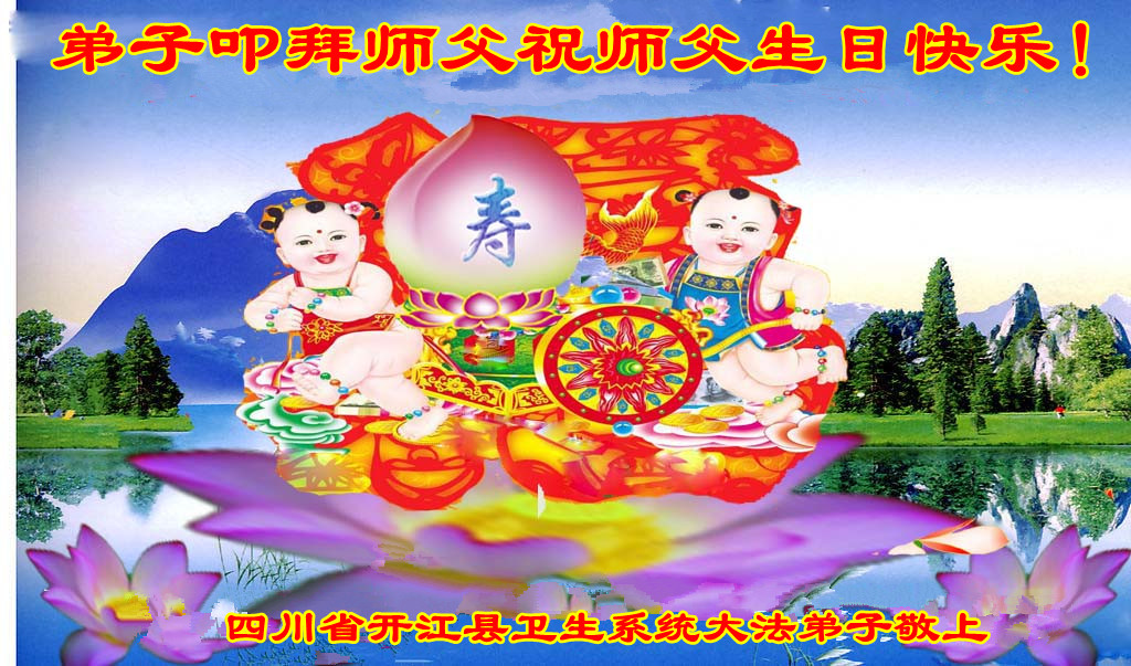 四川省達州市開江縣衛生系統大法弟子恭賀慈悲偉大的師尊生日快樂!
