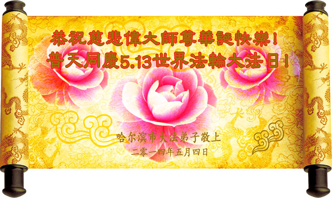 哈爾濱市大法弟子恭賀慈悲偉大的師尊華誕暨法輪大法洪傳二十二週年!普天同慶5.13世界法輪大法日!