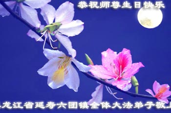 在這喜慶的日子裏,弟子們更加想念您!我們學法小組全體大法弟子衷心恭祝慈悲偉大的師尊生日快樂!