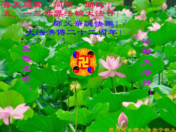 我們一定在師尊生日和大法洪傳二十二週年的這個大喜日子裏增加正念,聽師尊的話,做好三件事,多多救人,完成我們的誓約,來報答師尊對我們的救度之恩。