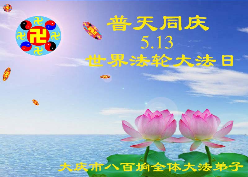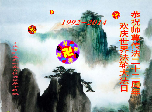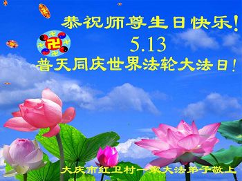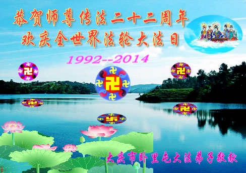 黑龍江省大慶市大法弟子恭賀大法洪傳二十二週年暨師尊華誕!
