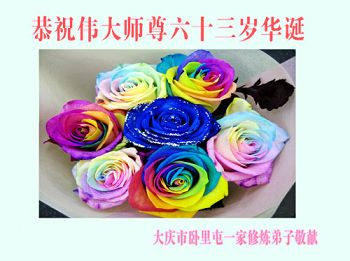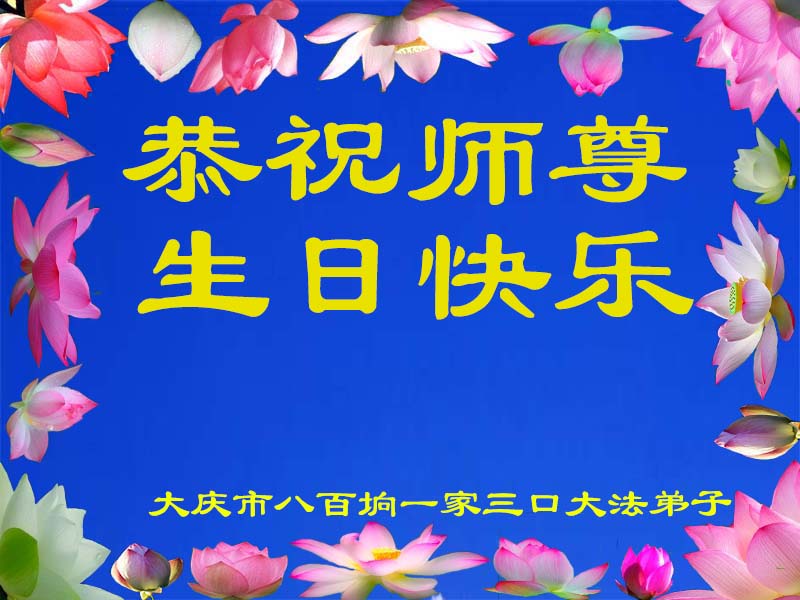 黑龍江省大慶紅衛村一家大法弟子恭祝師尊生日快樂!