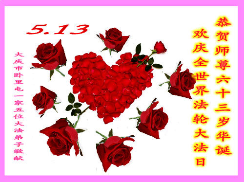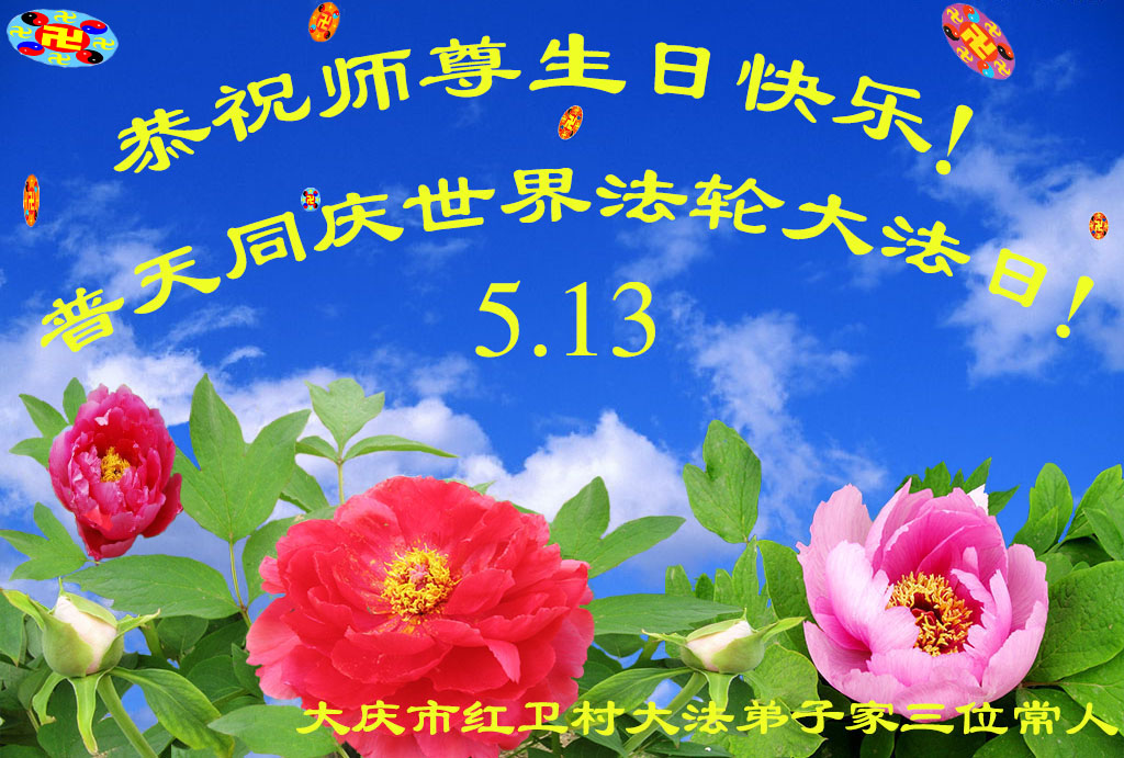 黑龍江大慶市臥裏屯一家五位大法弟子恭賀師尊華誕!歡慶全世界法輪大法日!