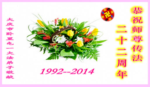 黑龍江大慶市臥裏屯一大法弟子恭賀師尊傳法二十二週年!
