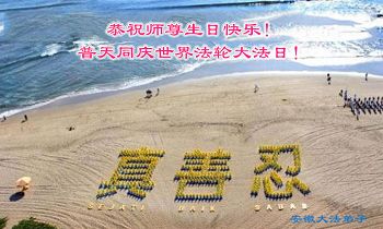 一定要老伴代她祝師父生日快樂!老伴接了電話後也很受感動,滿口答應。讓我們所有的大法弟子同祝師尊生日快樂!