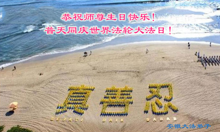 普天同慶世界法輪大法日暨法輪大法洪傳二十二週年。我們一定遵照師尊的教誨,整體配合做好三件事,修好自己共同精進,圓滿隨師還。