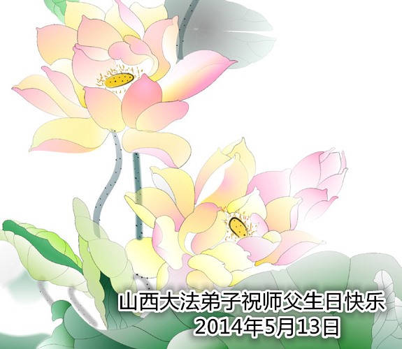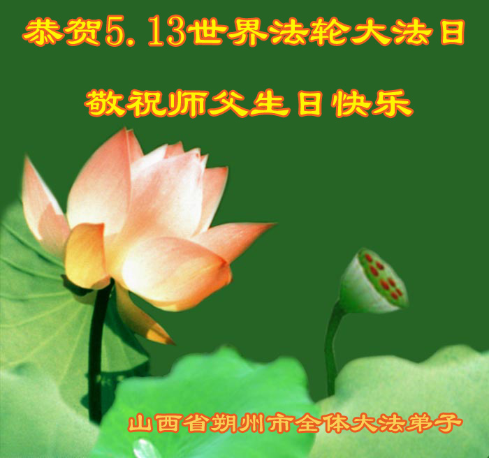 五月十三日是世界法輪大法日,在這個光輝節日來臨的時候,我們晉城市大法弟子恭恭敬敬站立師父像前合十,衷心祝願慈悲偉大的師父節日快樂!慶賀世界法輪大法日來臨。