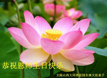 值此慈悲偉大的師尊六十三華誕暨普天同慶第十五屆世界法輪大法日到來之際,山西省晉城市陵川縣全體大法弟子恭祝師尊生日快樂! 請師尊放心我們決不辜負師尊的慈悲苦度,完成我們的史前大願,圓滿隨師還。