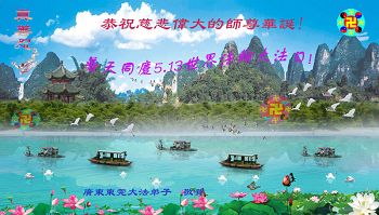 值此普天同慶之際,深圳一學法小組大法弟子,以無限敬仰與感恩之心,恭賀法輪大法洪傳二十二週年!恭賀第十五屆法輪大法日!恭祝師尊六十三歲華誕生日快樂!