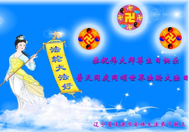 遼寧省朝陽市大法弟子恭祝慈悲偉大的師尊生日快樂!祝賀法輪大法洪傳世界二十二週年!祝賀5.13世界法輪大法日!