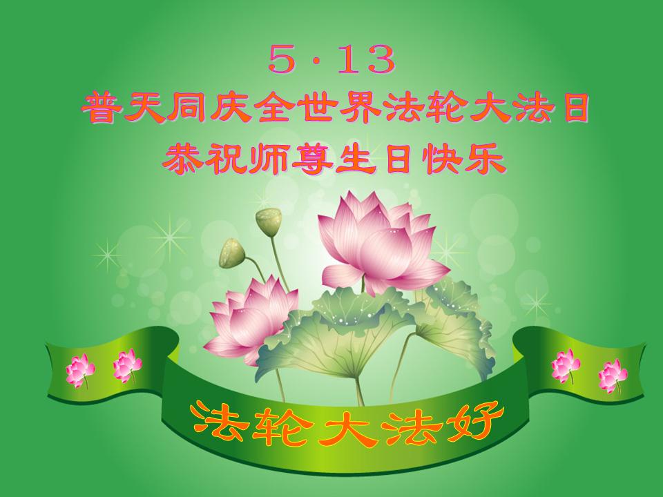 在513世界法輪大法日即將到來之時,我們懷著無比激動的心情,和全世界大法弟子一起歡慶這個偉大的節日!是真、善、忍偉大佛法為世人開創了一切,使人類有了正的能量,世人無不感謝師尊的救度之恩! 作為大法弟子非常感恩偉大師尊傳給我們宇宙大法!在佛恩浩蕩下我們不斷的歸正、成長、成熟。在助師正法、履行大法弟子的誓約上,做著我們該做的一切。在證實法的路上時時都感到師尊就在我們的身旁邊,引領著我們走好正法之路,呵護著我們正念正行不受迫害。千言萬語無法表達對師尊的感恩之心!在此叩謝師尊!恭祝師尊生日快樂!
