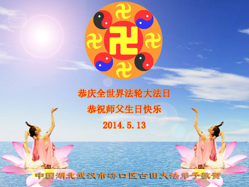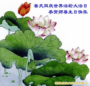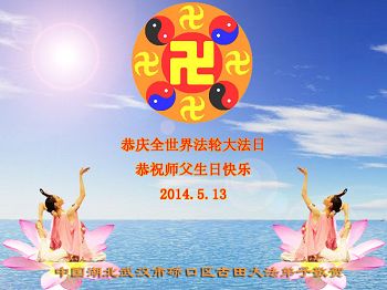 湖北武漢礄口大法弟子恭慶世界法輪大法日,恭祝師父生日快樂!