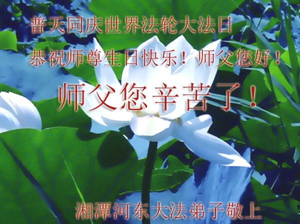 師父您辛苦了,謝謝師父的救度之恩,在這普天同慶的大喜日子裏,弟子雙手合十給師父拜壽,恭祝慈悲偉大的師尊生日快樂!恭賀世界法輪大法日!