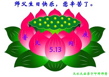 在這可慶可賀的日子裏,弟子感恩師尊,用人間語言難以表達對您的敬意和救度之恩,只能在今後我們要入心學法、去人心、配合好、多救人走正助師正法路,讓師尊多一點欣慰,少一點操勞。