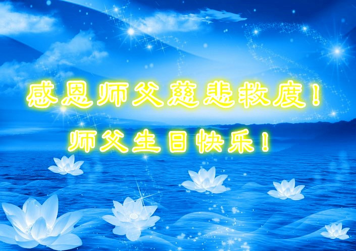 師父辛苦了,十五年反迫害中弟子在師父慈悲呵護下走到今天,這無不浸透師父慈悲救度,弟子無法報答恩師,唯有多救人,以謝恩師。再一次祝師父生日快樂。