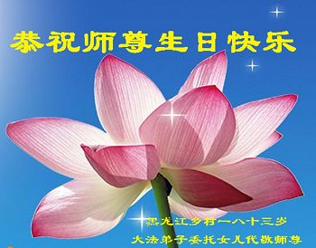 我是黑龍江某鄉村一八十三歲大法弟子,委託我的女兒代問師尊好,並恭祝慈悲偉大的師尊生日快樂!感恩師尊賜給我第二次生命,我要珍惜延續來的生命,好好修煉,多救人,跟師尊回家。