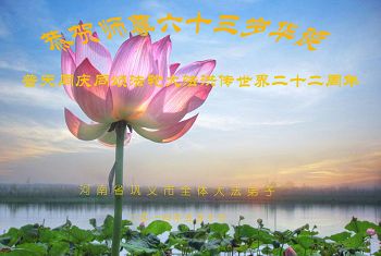 鄭州一學法小組叩謝師父救度之恩,決心盡自己最大的努力修好自己,救度更多的眾生,不負師尊厚望,隨師圓滿回家。祝師尊生日快樂!慶祝世界法輪大法日!