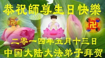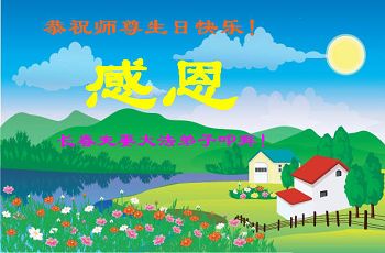 在這滿穹宇同慶的日子裏,我及妻子同修並代表被救的世人,向偉大的師尊祝賀生日快樂!並祝賀大法傳世22週年!師父辛苦了!謝謝師父救度之恩!弟子無以回報,只有不斷精進,做好三件事,修好自己,更多的救人,讓師尊欣慰。