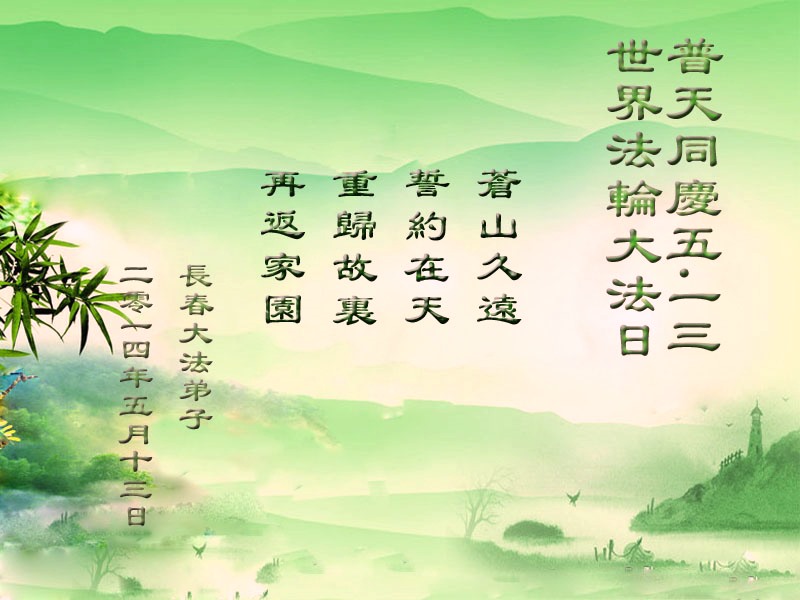 吉林省長春一大法弟子恭祝師尊生日快樂暨法輪大法洪傳世界二十二週年!
