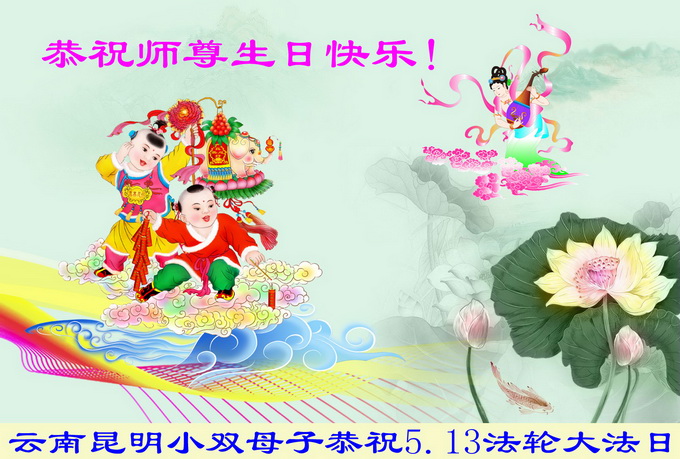 雲南省昆明母子大法弟子恭祝師尊生日快樂!