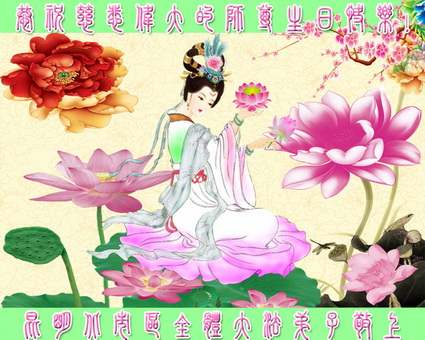 謝謝師尊的慈悲苦度,想起您為弟子們承受了那麼多,想想我們從「七二零」至今在風風雨雨,捽捽打打的修煉歷程中,在巨大的魔難過關中,都是在師尊時時刻刻的慈悲呵護中,牽著我們的手走過來的。弟子們用盡全人類的語言也無法表達我們對您的感恩,弟子們無以為報,只有精進,更精進,在最後證實法,救度眾生的進程中,聽師尊的話,走好師尊安排的路,學好法,去除人心,整體提高,整體配合協調好,在最後不多的時間內抓緊救度更多的眾生。兌現史前那神聖的誓約。以報師恩,願師尊少一份操勞,多一份欣慰。