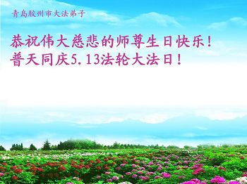 山東青島開發區大法弟子恭祝師父生日快樂!恭賀世界法輪大法日!