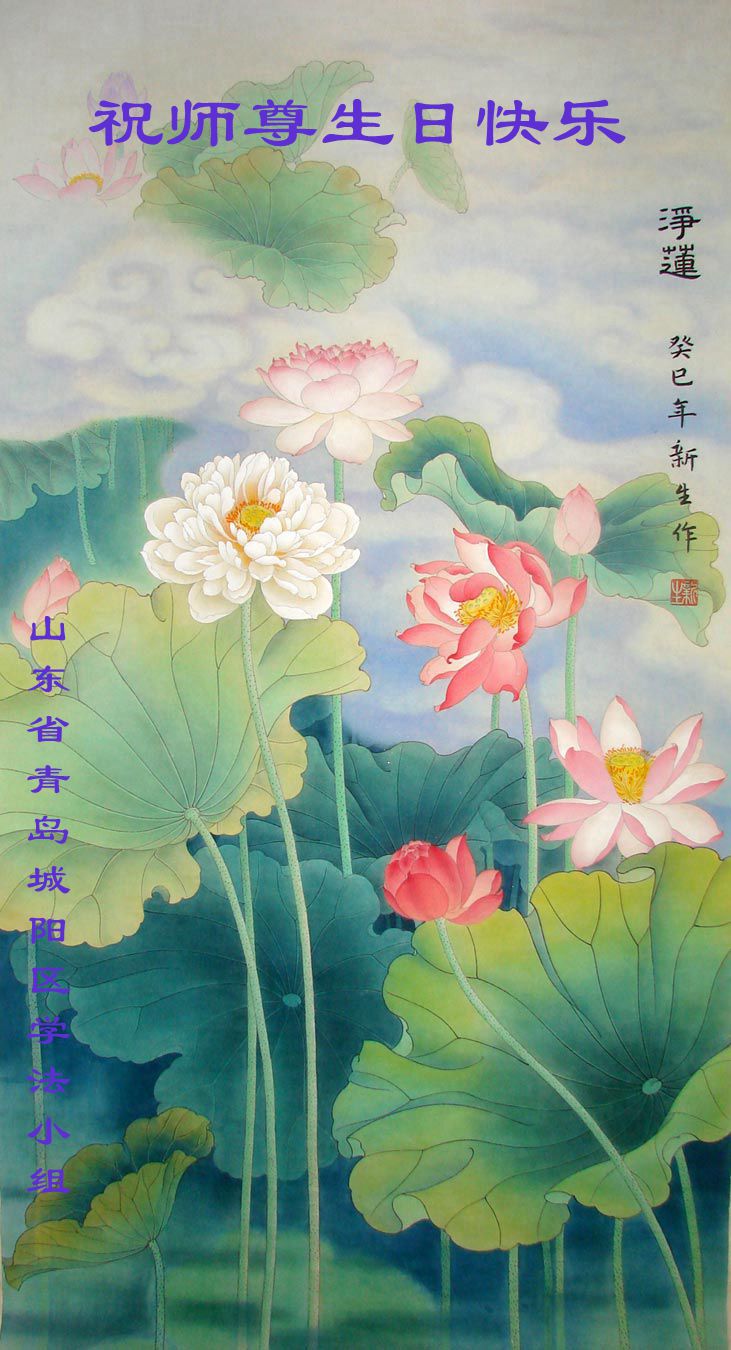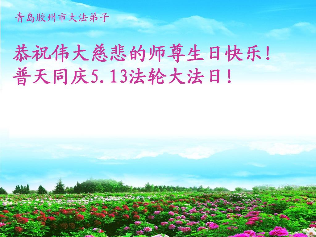 山東省青島市大法弟子恭賀慈悲偉大的師尊生日快樂!普天同慶法輪大法日──5•13!