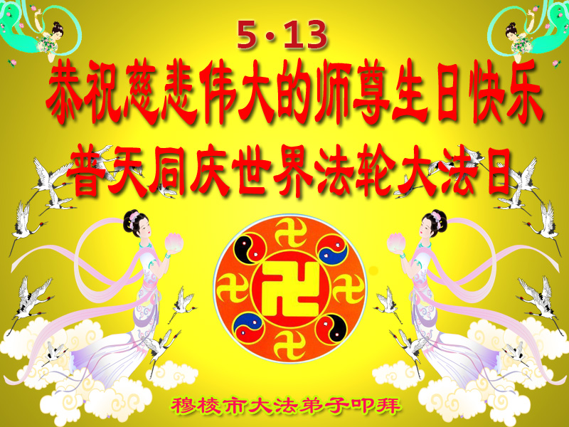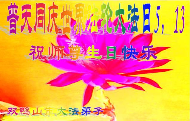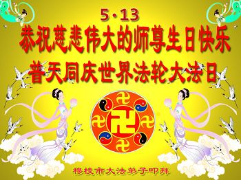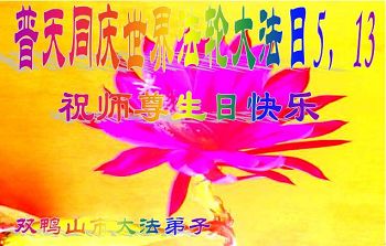 師父傳宇宙大法救度眾生,使我們脫胎換骨,知道了生命的存在意義。無法用語言表達對師父的感恩!在此普天同慶之日,我們叩拜偉大的師父!師父您辛苦了!弟子們只有不斷精進實修,按師父的要求做,才能不負師尊厚望,少讓師父為弟子們操心!