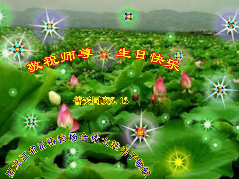 盎然的春光,時值這歡欣鼓舞的日子,幸福的光環包繞著我們,訥河市全體大法弟子恭賀師尊華誕!