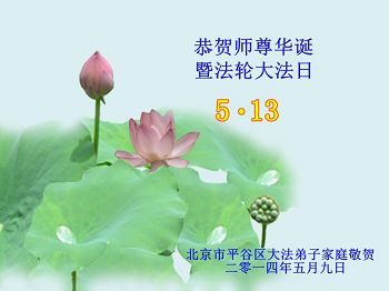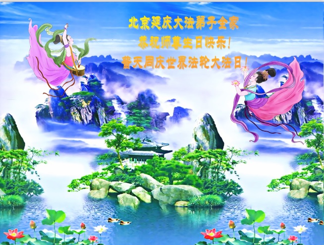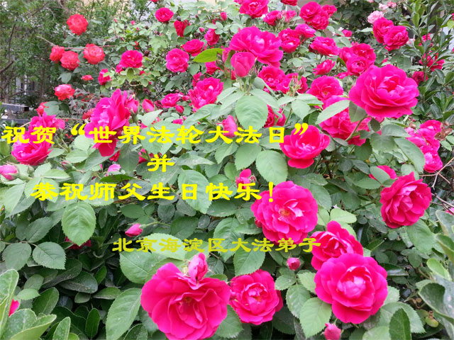 值此又一個「世界法輪大法日」到來之際,謹代表北京海澱區木樨地煉功點的大法弟子,向慈悲偉大的師父表示深深的感恩並衷心祝願師尊生日快樂!
