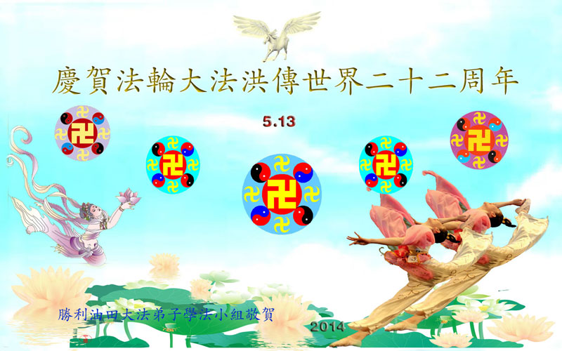 勝利油田大法弟子學法小組慶賀法輪大法洪傳22週年!