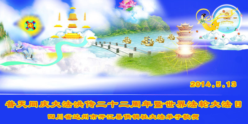 四川省達州市開江縣供銷社大法弟子普天同慶大法洪傳二十二週年暨世界法輪大法日!