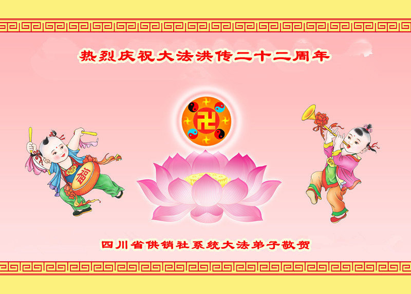 四川省供銷社系統大法弟子熱烈慶祝大法洪傳二十二週年!