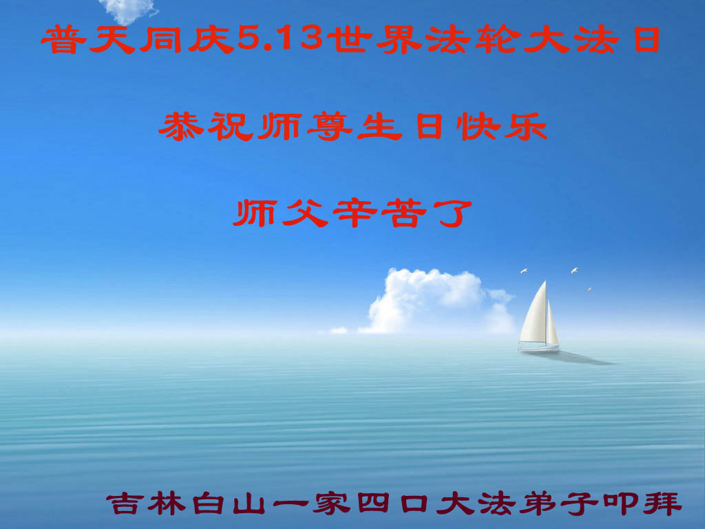 祝師尊生日好,慶祝五月十三日法輪大法日,師尊弟子們想您!弟子們感謝您的救度之恩,在今後的日子裏,我們更加做好三件事,修去所有的執著和人的思想,跟師回家。
