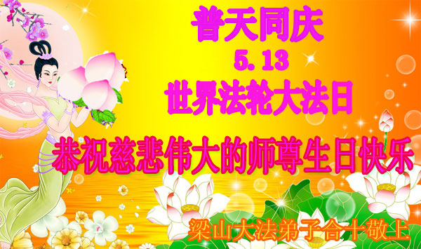 五月十三日是世界法輪大法日也是師父的生日,我是大陸弟子,祝賀法輪大法日!祝賀師父生日快樂!希望世人都能早日明真相得救度!