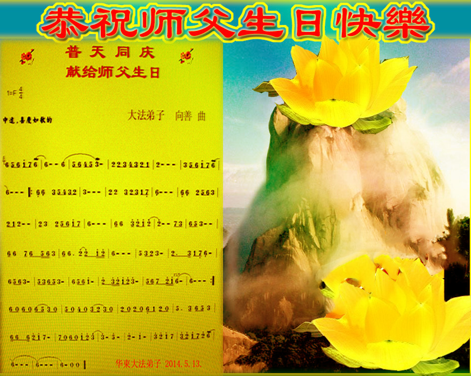 我們在塵世中迷失了方向,是師尊把我們從地獄中撈起、洗淨。師尊慈悲的容顏常常顯現在眼前,我們唯有堅信法堅定正念。在這全球共祝的生日裏,我們共祝師尊生日快樂!在此我們全家叩拜師尊!