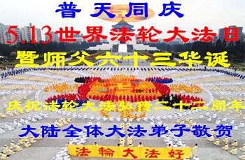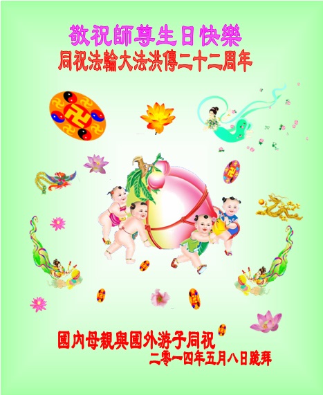 祝賀法輪大法洪傳世界二十二週年,願世人早日得度!