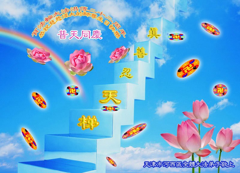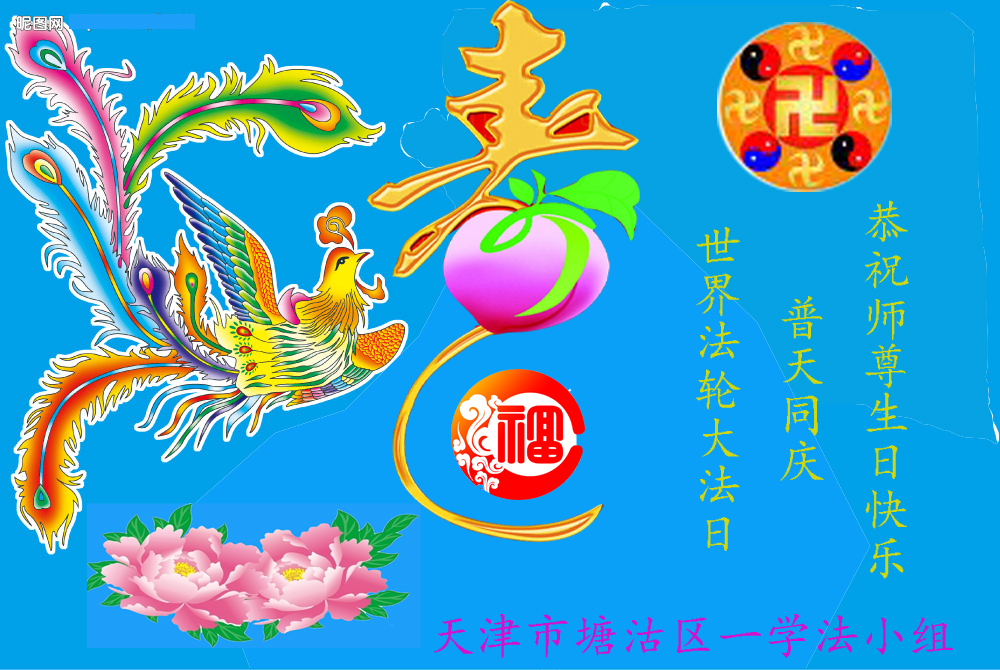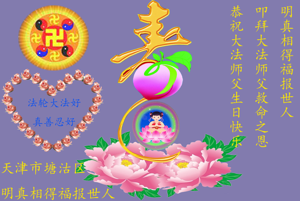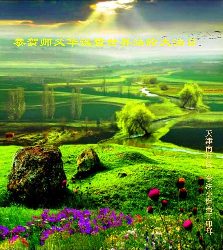 天津大法弟子恭祝師尊生日快樂!祝賀法輪大法日!感謝師尊慈悲苦度,一定做好三件事,圓滿隨師還!