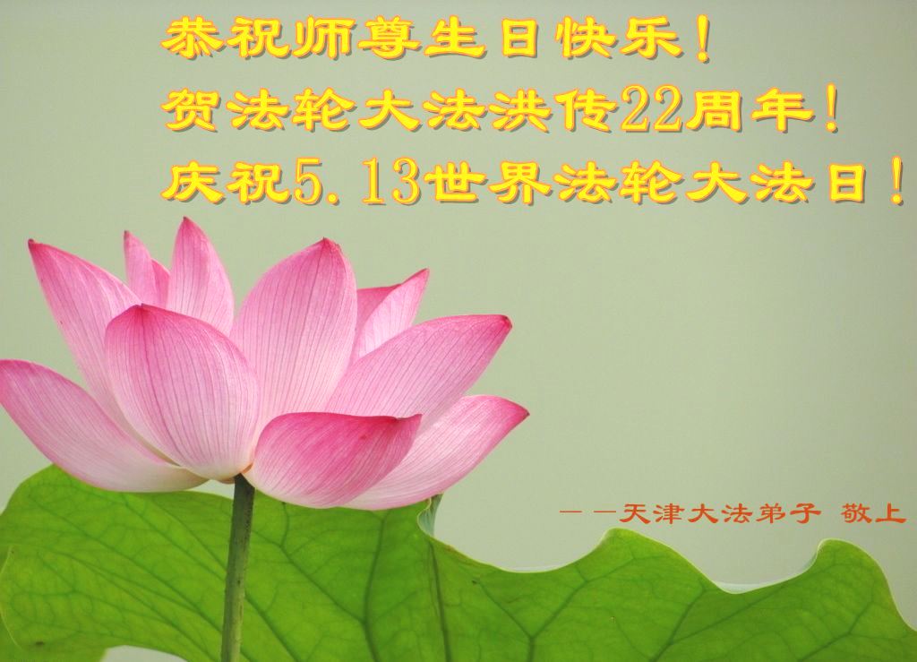 在法輪大法洪傳第二十二年來臨之際,天津大法弟子叩拜師恩。決心修好自己,做好三件事,緊跟師尊正法進程,救度眾生。在此恭祝師尊華誕,祝賀法輪大法日!