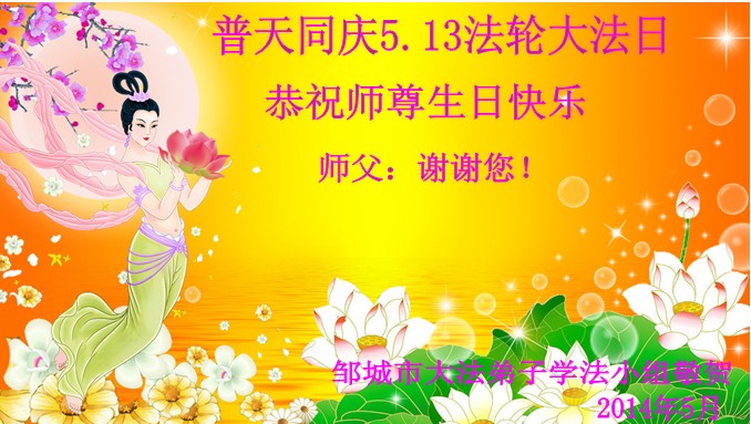 山東招遠大法弟子 二零一四年世界法輪大法日敬祝