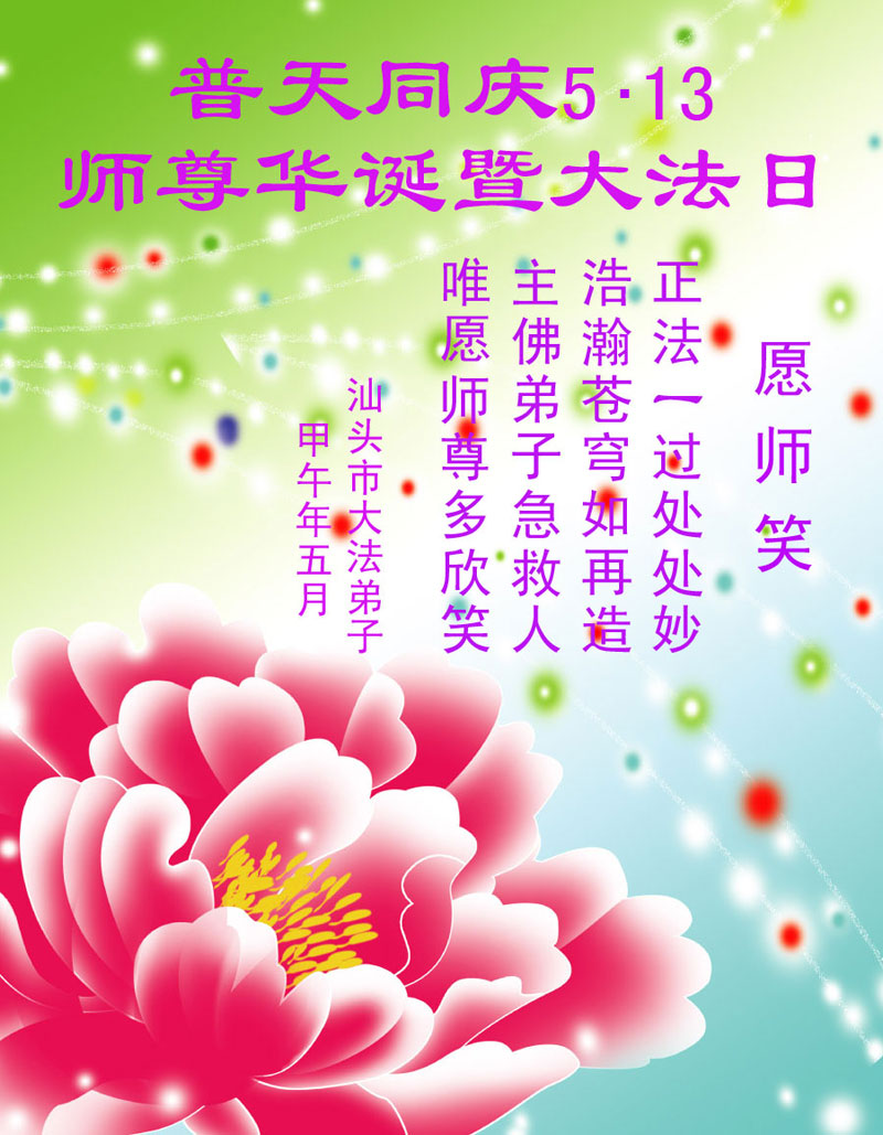 廣東省汕頭大法弟子恭祝師尊華誕暨同慶法輪大法日!