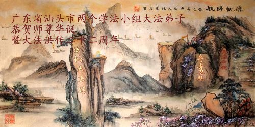 廣東省汕頭市兩個學法小組大法弟子恭賀師尊華誕暨大法洪傳22週年!