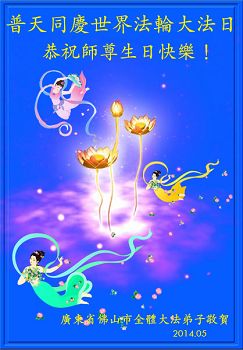 廣東省佛山市全體大法弟子恭祝慈悲偉大的師尊華誕快樂!慶祝第十五屆世界法輪大法日暨法輪大法洪傳二十二週年!