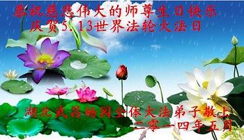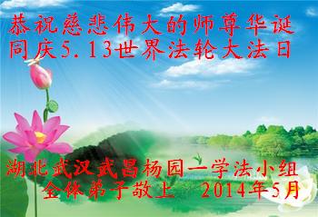 我們學法小組都是7.20以前得法的弟子,在這血雨腥風的十幾年裏從沒中斷過小組集體學法,一直較為平穩的做著師父安排的三件事。雖然各自的修煉路不同,可我們都切身感受到無所不能的師尊時時刻刻在保護著弟子,理解了佛恩浩蕩的又一層涵義。弟子對師尊的感恩無以言表,在此真誠的恭賀師尊生日快樂!弟子們努力做好三件事,讓師尊少一點操勞。全體大法弟子敬上!