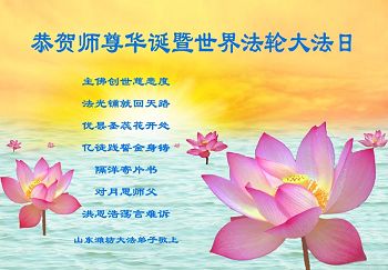 山東濰坊大法弟子祝師尊生日快樂!想說謝謝師尊的慈悲救度,卻無法用語言表達。隻言片語寄去弟子對師尊的感恩。越到最後,弟子越要看到自己的不足,越要理智、清醒、注意安全,走正走穩救人路。