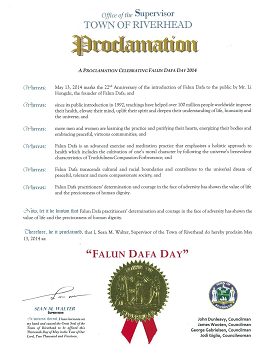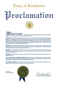 鑑於,法輪大法於一九九六年傳入紐約並在長島有十四年的傳播。