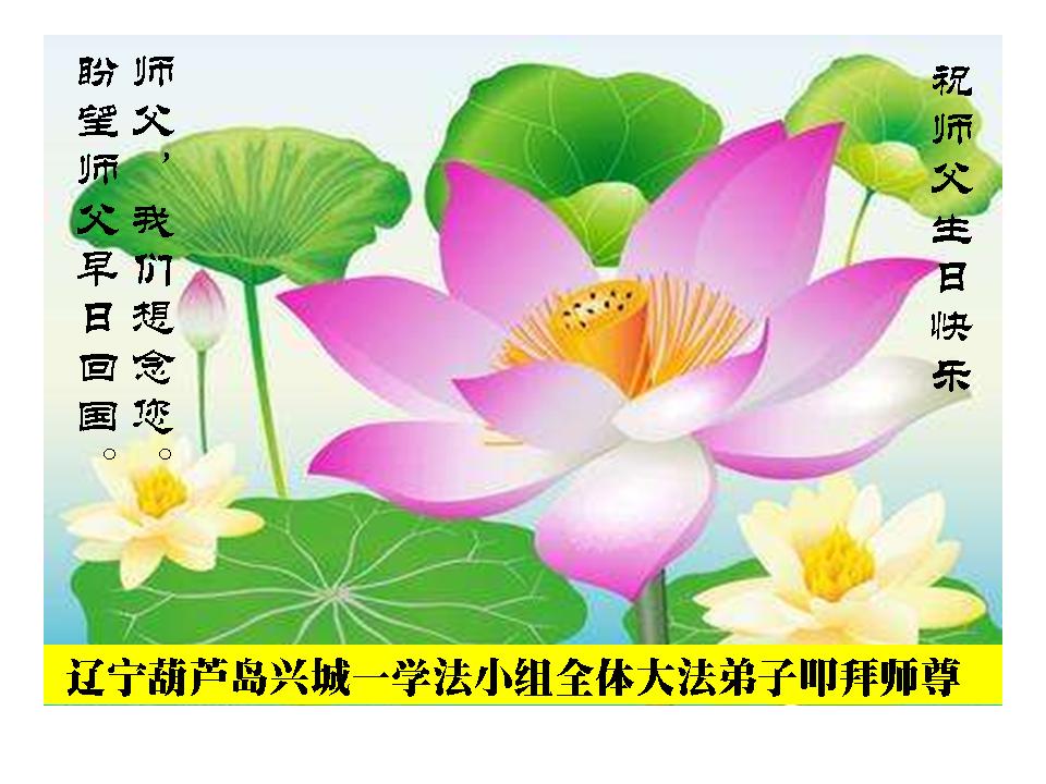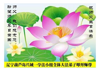 我們小組的全體大法弟子在此向慈悲偉大的師尊問好,師尊生日快樂!師父啊!是您為我們淨化了心靈,淨化了身體,還時刻保護著我們走到今天。您為弟子們付出的太多太多……弟子們無以回報,只有發自內心的對師尊說:師父啊,您辛苦了!弟子們謝謝您!今後我們更要信師信法,聽師父的話,改變觀念,學好法,向內找,多救人,做好三件事,堅修到底,就走師父安排的路,跟師父回家。