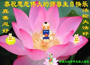 在5.13普天同慶即將來臨的日子,弟子們全家二代大法弟子懷著無限敬仰的感恩之心,恭祝慈悲偉大的李洪志師父63歲華誕!恭賀5.13世界法輪大法日及法輪大法傳世21週年!是無量智慧與慈悲的偉大師父用巨大的承受一次又一次的給眾生延長著得救的機緣,給弟子們延長著修煉圓滿的機緣,弟子們無法用語言來表達對您的感恩!千言萬語化作一句話:「法輪大法好!真善忍好!」真誠的祝願天下存有善念的人記住此言,進入美好未來!