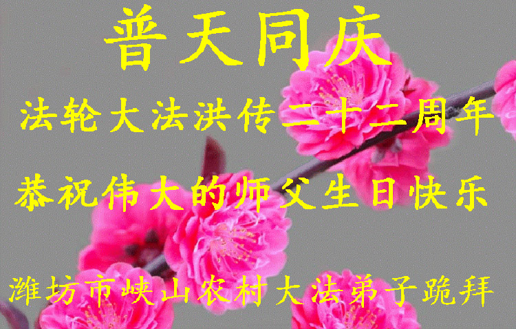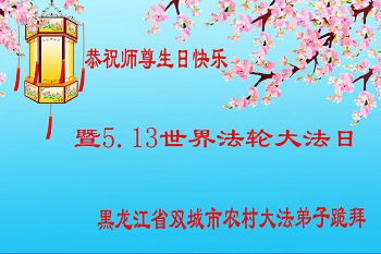 我們是順義農村的大法弟子,在世界法輪大法日到來之際,在這普天同慶的日子裏,我村的全體大法弟子遙拜師尊並恭祝師尊生日快樂!