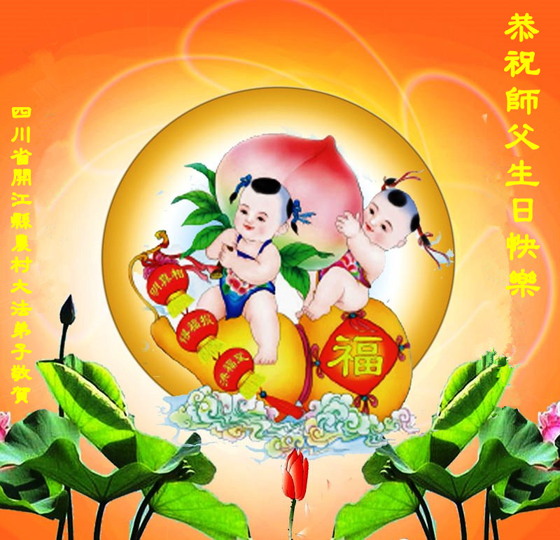 在這普天同慶的日子裏,我們重慶一鄉鎮全體大法弟子敬祝師父生日快樂!師父的浩蕩佛恩,弟子們無力報答,我們一定聽師父的話,做好三件事,讓師父多一份欣慰,少一些操勞。再次敬祝師父生日快樂!